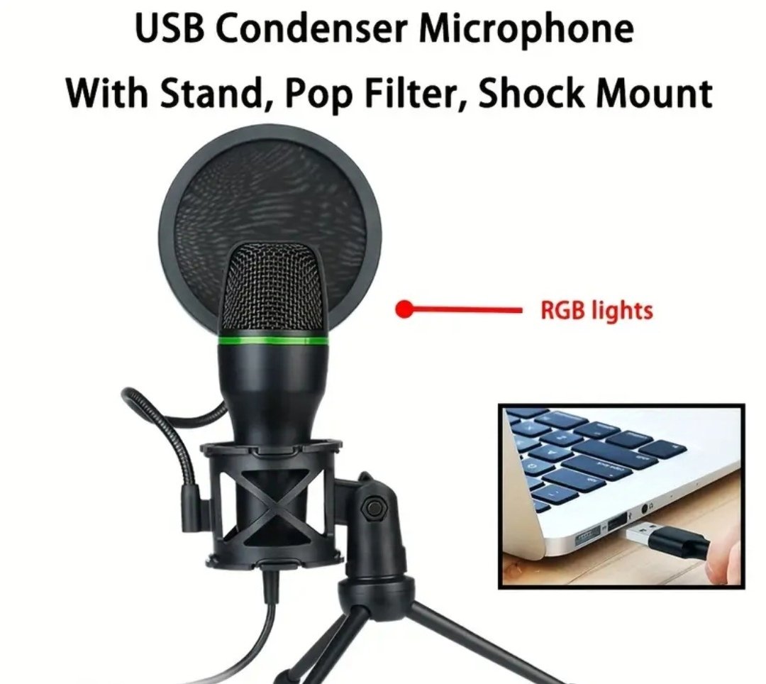 Eleva la calidad de tus grabaciones con nuestro micrófono USB condensador. Diseñado para ofrecer un sonido claro y nítido, este micrófono es perfecto para podcasters, streamers, creadores de contenido y cualquier persona que busque una solución de grabación de alta calidad.
